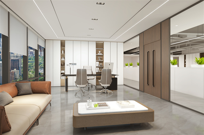 3、最后門窗大致分為:鋼化門、純實木門、實木免漆門、復合實木門等。一般辦公室鋼化門常指鋼化玻璃門,使用的居多。純實木門質量更好質感最強,但是價格較貴,實木免漆門使用較多,但是光澤度不高容易起泡。復合實木門結構與實木免漆門相似但比實木免漆門還更為經(jīng)濟。綜上所述,對于辦公室裝修的門窗選擇應該因設計和需求制宜,在采用之前細心選擇才能夠更好的表達空間效果。