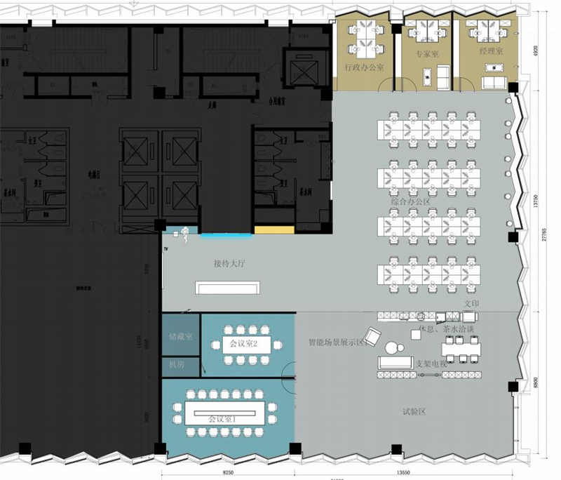 對隱私要求不高的部門盡量敞開辦公,一定需要獨立辦公空間的也最好使用玻璃隔斷,這樣通透性更強些,空間的劃分外觀更合理,同時保持空間的完整性。