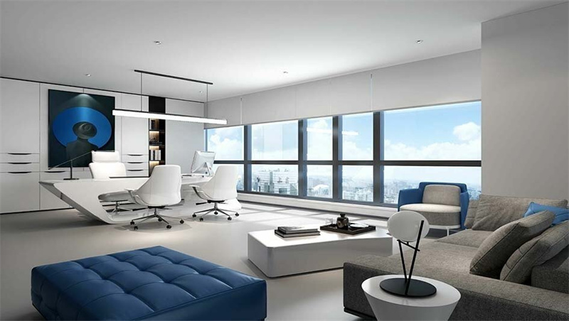 首先我們都知道辦公室設計布置一般有辦公桌或是電腦桌,座椅,書柜,電腦、字畫等組合而成,如果作為老總辦公室,空間內的家具還有茶幾,沙發等模式,使空間最大化利用,設計更人性化,更加符合使用者的身份。