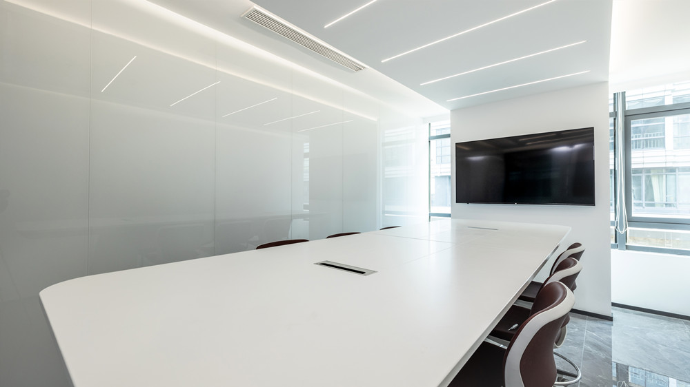 因?yàn)?00平米的辦公空間有限,所以在部分區(qū)域采用隔音玻璃作為隔斷,既能阻隔空間,又能讓每個(gè)空間都有自己的私密性。在設(shè)計(jì)會(huì)議室的時(shí)候,布局要簡(jiǎn)單一些,讓更好的創(chuàng)意在舒適的空間里發(fā)揮出來(lái),提高工作效率。