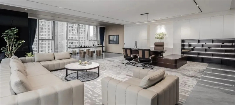 作為總經理辦公室,除了考慮使用面積稍大以外,為了擴大視覺空間,一般會采用矮一些的辦公家具設計,因為過于擁擠的環境會束縛人的思維,帶來心理焦慮等問題。總經理是公司決策層的資深成員,為他創造良好的辦公環境極為重要。