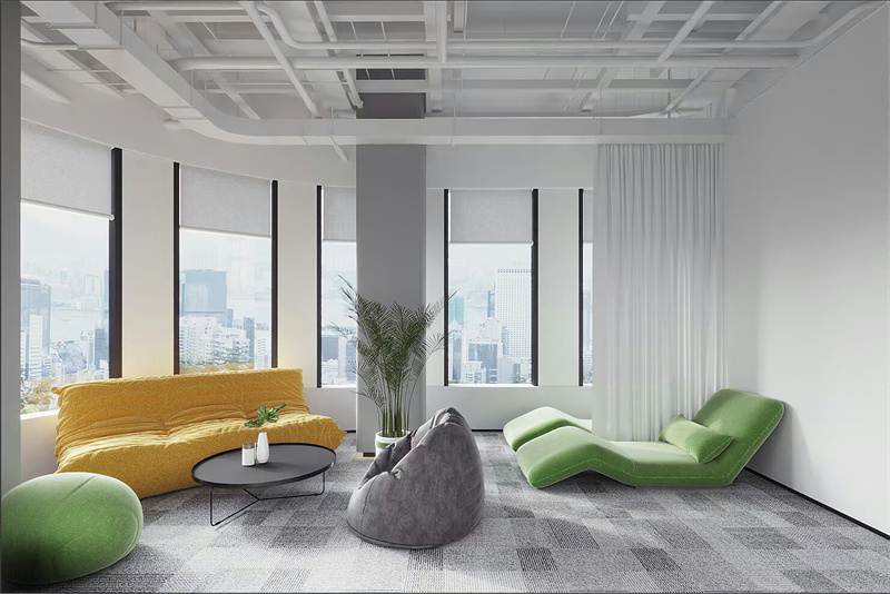 這種風格一般適用于中小型公司。它用了很多線條,簡約時尚,喜歡用植物裝飾每個角落。通過光影的應用效果,可以在更小的空間里做出變化。
